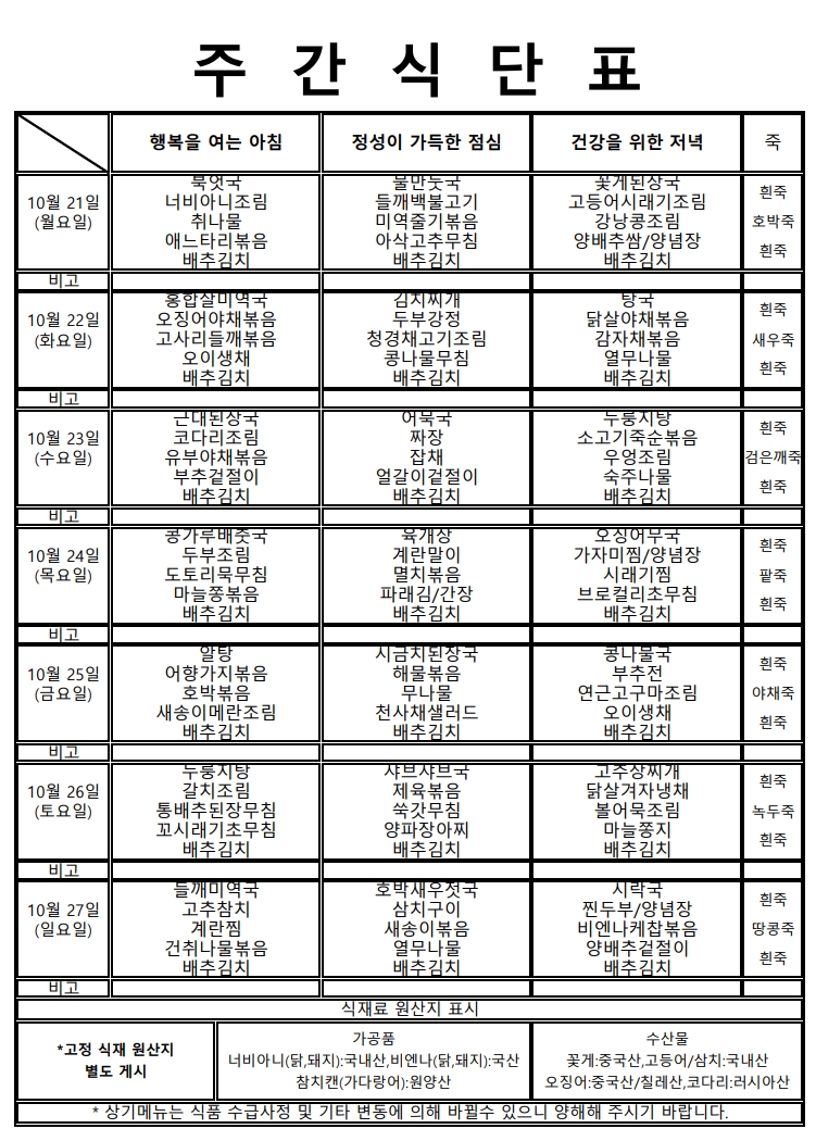 ★주간식단표(10.21~10.27)