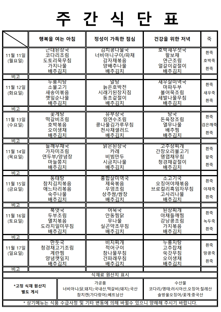 ★주간식단표(11.11~11.17)